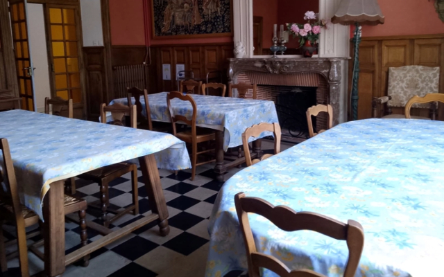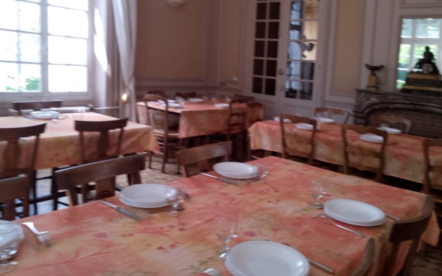 Un mobilier classique de tables de 6 à 10 couverts, une décoration soignée contribuent à faire des repas au Prieuré Saint -Thomas des moments de détente et de convivialité.